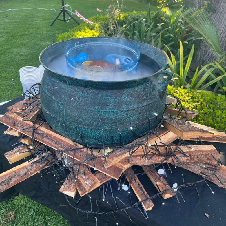 Kick off with dinner, drinks, a bouncy house, and spooky music. This gives everyone time to gather, settle in, and get into the Halloween spirit.